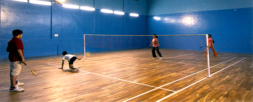Badminton court is situated in the main Club House building with dimensions, 65'X40'X25' with full fledged lighting facilities and a vinyl coated wooden floor.